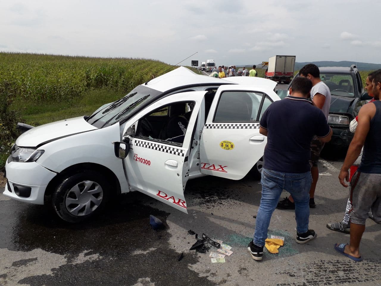 Din primele informații implicată în accident este și o mașină de taxi.