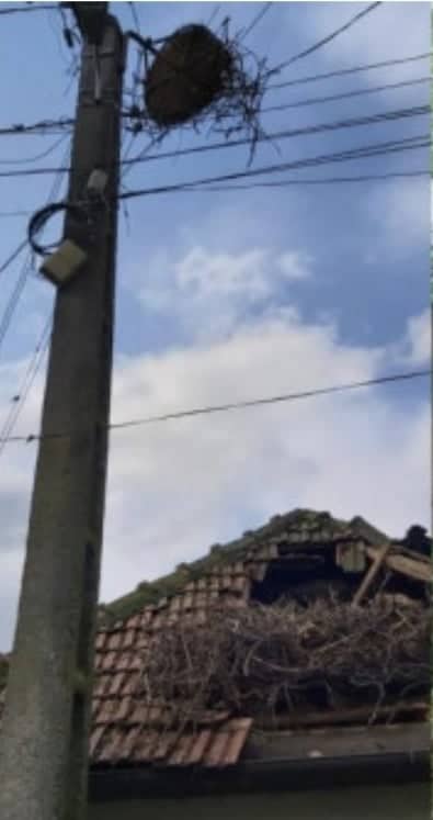 Vremea rea din ultimele zile a stricat cuibul unei berze care se afla pe stâlpul din faţa unei case din satul Breaza, comuna Lisa.