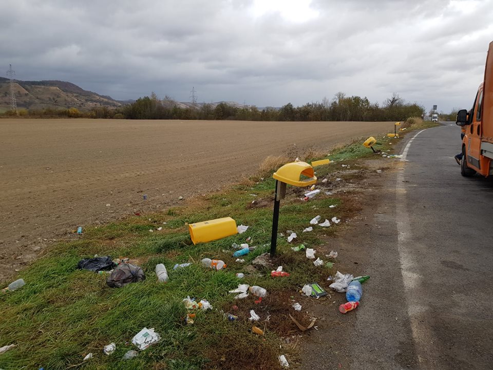 În această dimineață lucrătorii DRDPD Brașov au găsit, pe DN1, toate coșurile de gunoi de pe marginea drumului rupte, iar gunoiul împrăștiat.