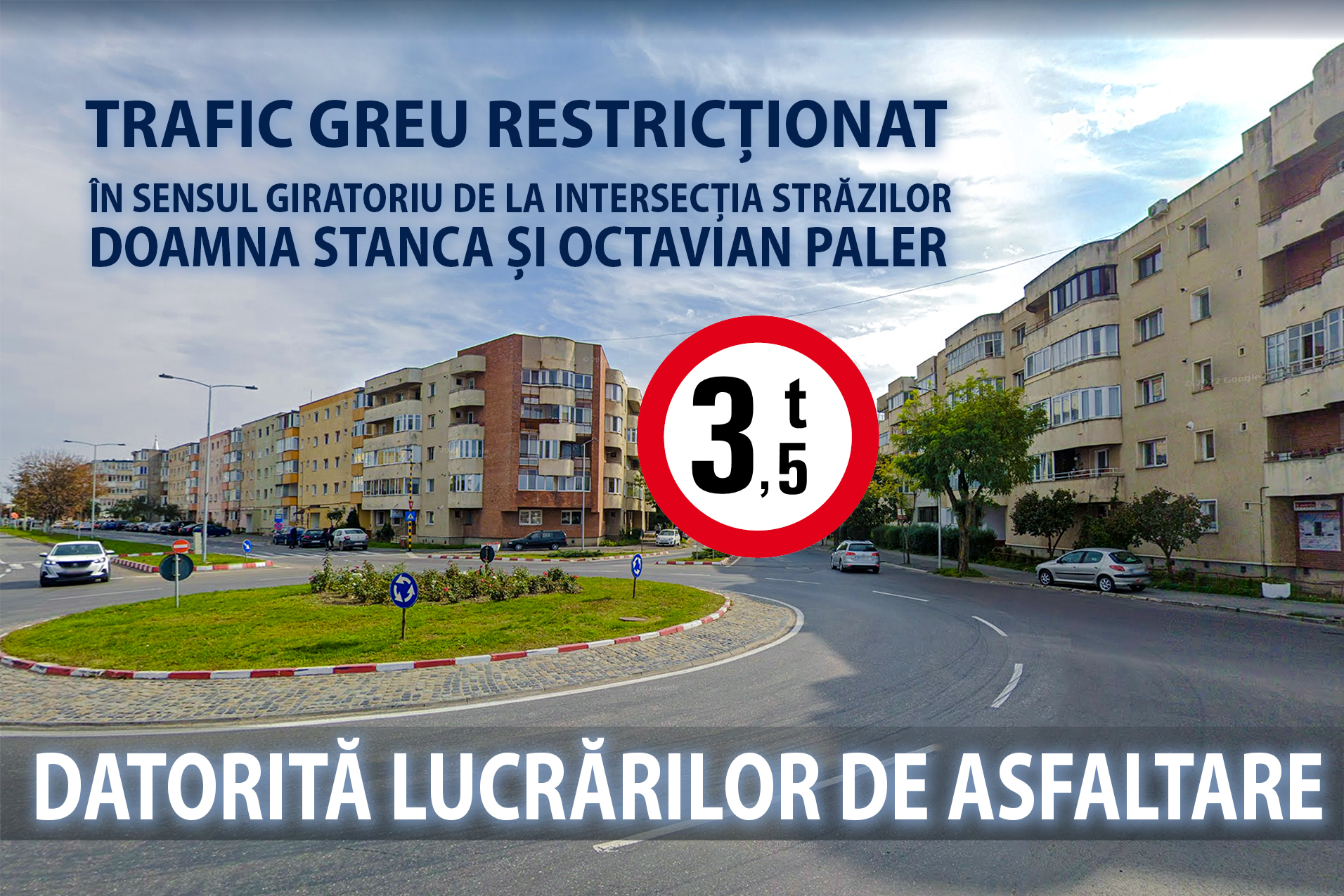 De asemenea, în sensul giratoriu de la intersecția străzilor Doamna Stanca și Octavian Paler, traficul greu este direcționat prin centrul orașului.