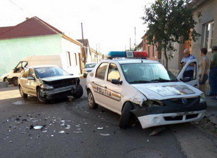 Un bărbat în vârstă de 31 de ani din orașul Victoria este cercetat penal, după o urmărire în trafic încheiată cu o tamponare, sâmbătă noaptea, pe DJ 104 A. O patrulă auto din cadrul Poliției a observat că șoferul a întors brusc mașina, la vederea sa, pentru a evita controlul, așa că a pornit în urmărire, cu semnalele acustice și luminoase în funcțiune. masina politie lovita