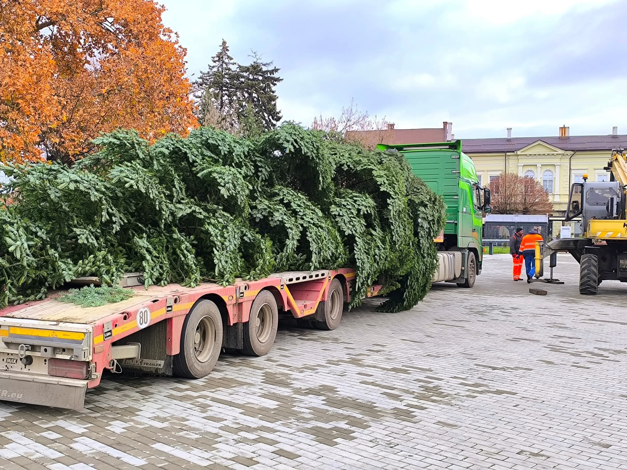 Miercuri dimineață, Făgărașul a primit simbolul sărbătorilor de iarnă: bradul de Crăciun care va fi instalat în centrul orașului. Pomul, de dimensiuni impresionante, a fost adus pe un trailler și este descărcat cu ajutorul unei macarale de către angajații Primăriei Făgăraș.