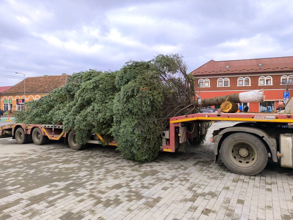 Bradul de Crăciun a ajuns la Făgăraș. Luminile sărbătorilor se vor aprinde pe 1 Decembrie