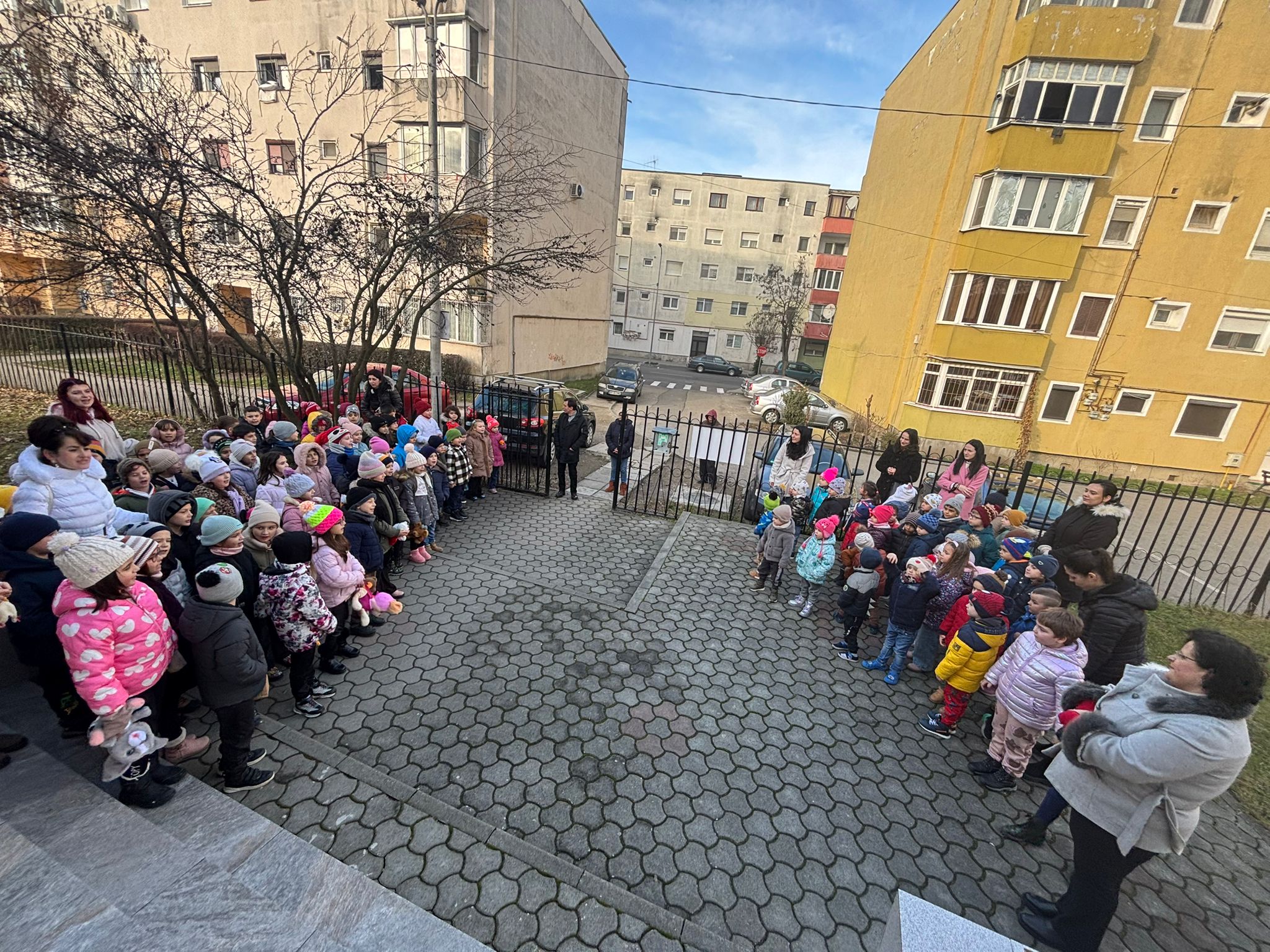 ,,Astăzi am primit colindători de la Școala ,,Ovid Densușianu”. 70 de copii de la învățământul preșcolar și 4 doamne învățătoare au venit să ne cânte și să ne încânte cu colinde, iar noi i-am răsplătit cu covrigi și bomboane. În luna martie vom merge noi cu micuții la școala lor, unde vom învăța să confecționăm mărțișoare”, a declarat directorul instituției, Maria Stermin.
