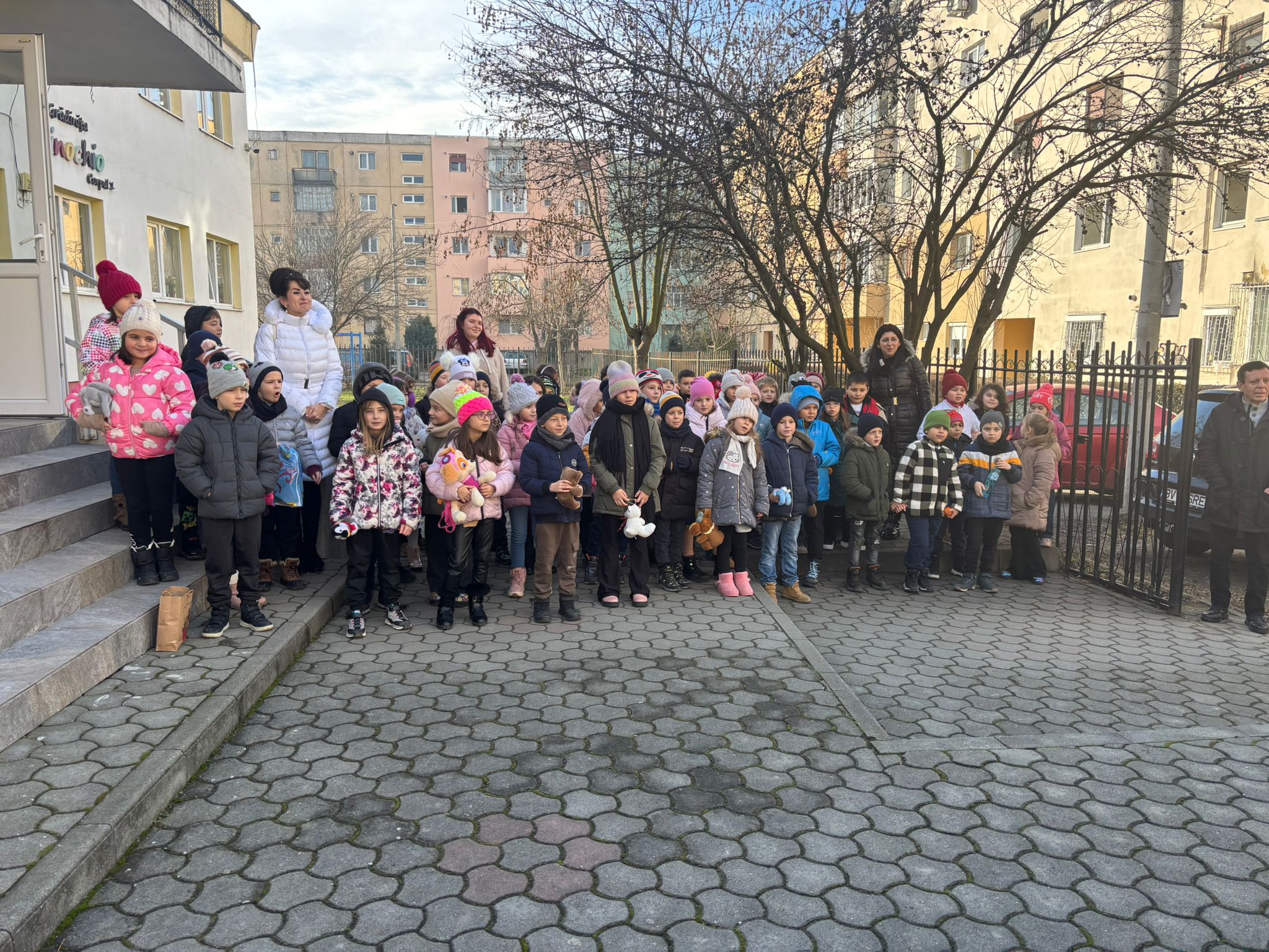 70 de școlari de clasa I și 3 învățătoare de la Școala Gimnazială ,,Ovid Densușianu” au fost astăzi la colindat la Grădinița ,,Pinochio” de pe strada 1 Decembrie 1918. Între cele două instituții de învățământ este un parteneriat, în cadrul cărora elevii și preșcolarii fac activități comune în decursul anului școlar.