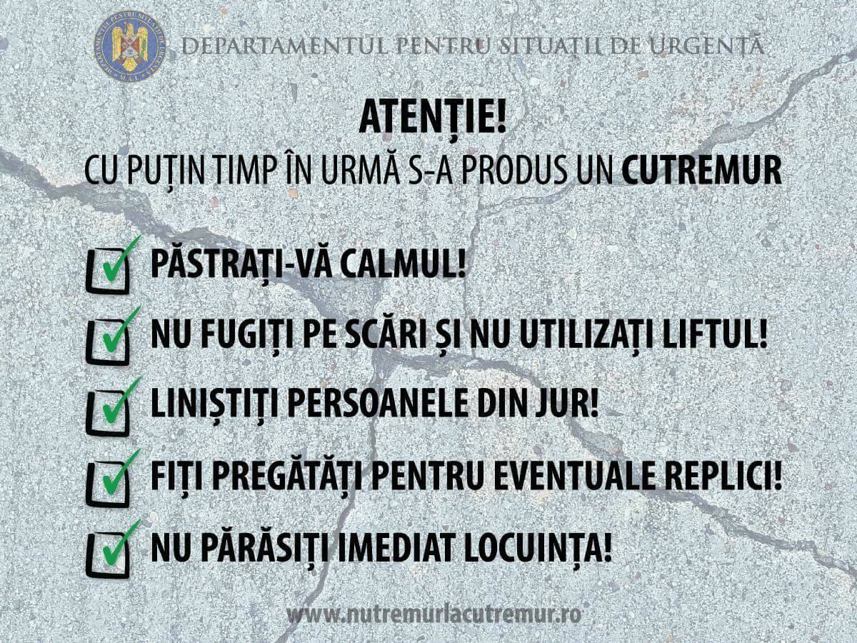 În urma cutremurului produs în zona seismică Vrancea, la nivel național nu au fost semnalate urgențe, la numărul unic pentru apeluri de urgență 112.