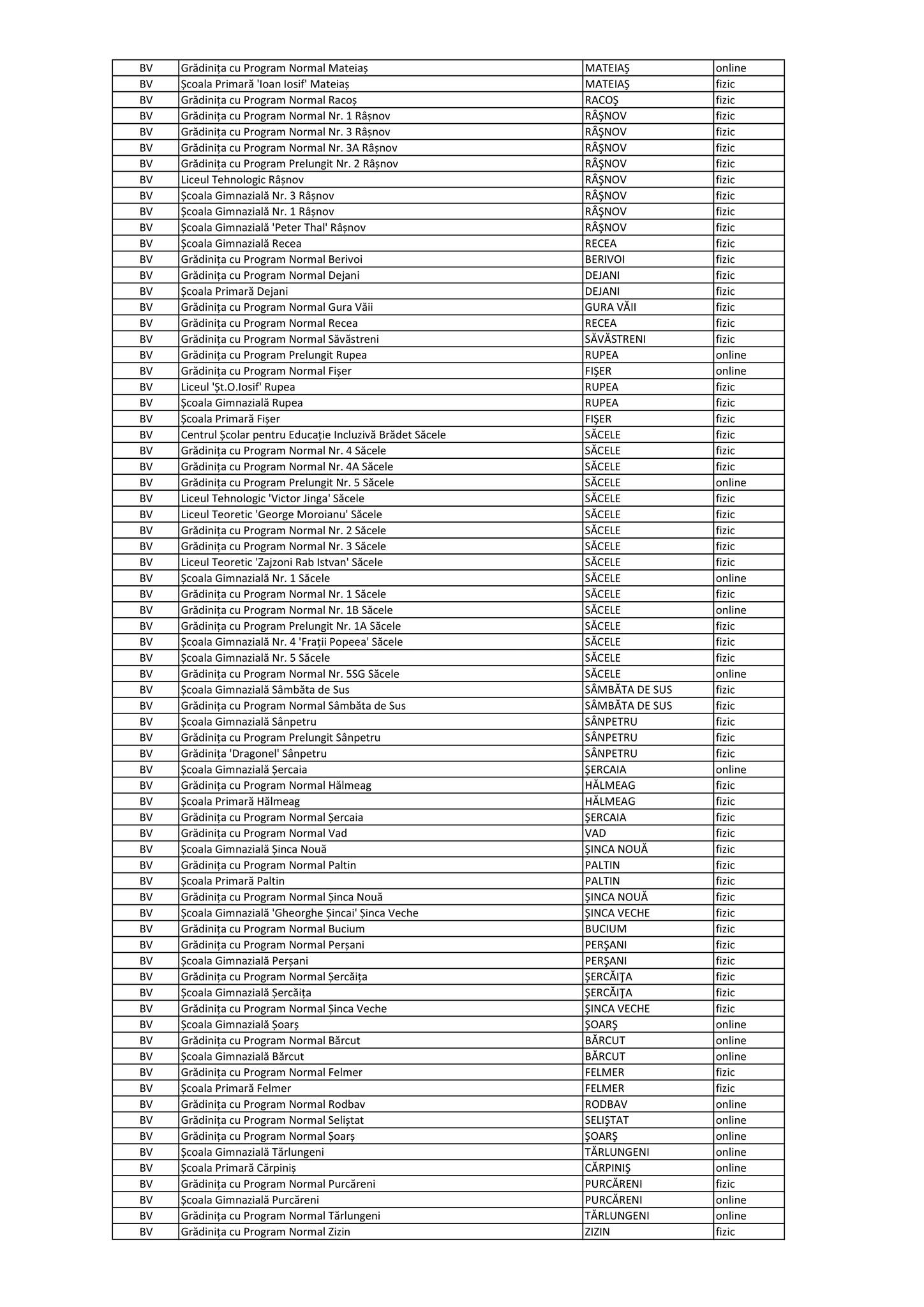 Restul unităţilor şcolare din judeţ vor face cursuri cu prezenţă fizică.