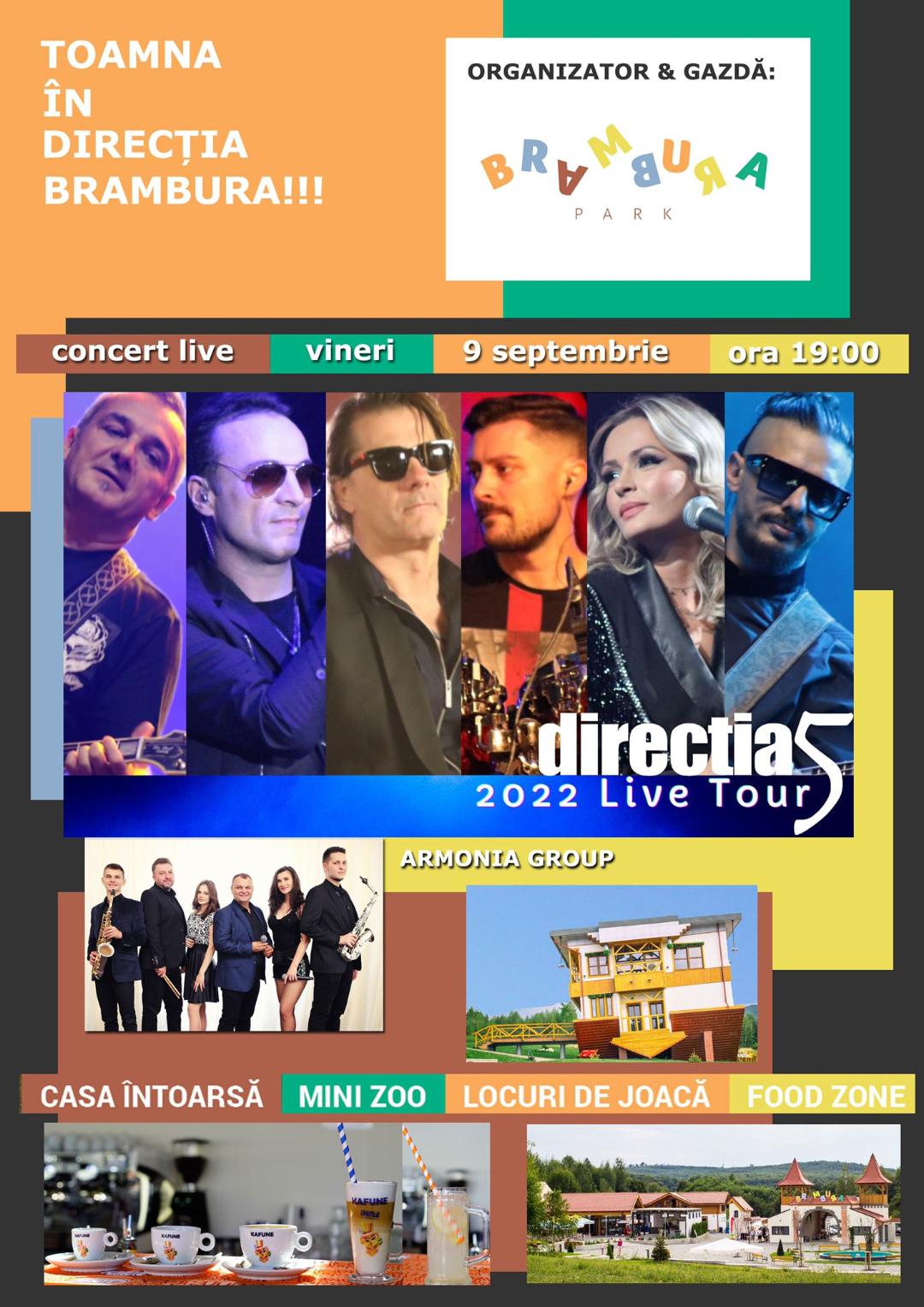 O toamnă în direcția … Brambura! Brambura Park, provocarea distracției din acest an, intră în toamnă cu un concert de zile mari! Direcția 5 cântă live – pentru voi – vineri, 9 septembrie! Te așteptăm în cel mai cel parc de distracții dintre toate să te bucuri de muzică super, în aer liber și curat de munte, la un pas de o casă întoarsă (la propriu)!”, au transmis reprezentanții Brambura Park.