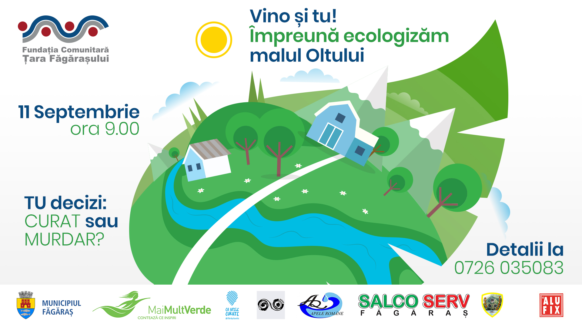 • Fundația Comunitară Țara Făgărașului organizează vineri, 11 septembrie, de la ora 9:00, campania de ecologizare pe malul Oltului în Făgăraş, eveniment ce are loc în parteneriat cu Asociația Mai Mult Verde, Primăria Municipiului Făgăraș, SGA Brașov, Salco Serv Făgăraș, AVPS Făgăraș în cadrul proiectului Cu Apele Curate.