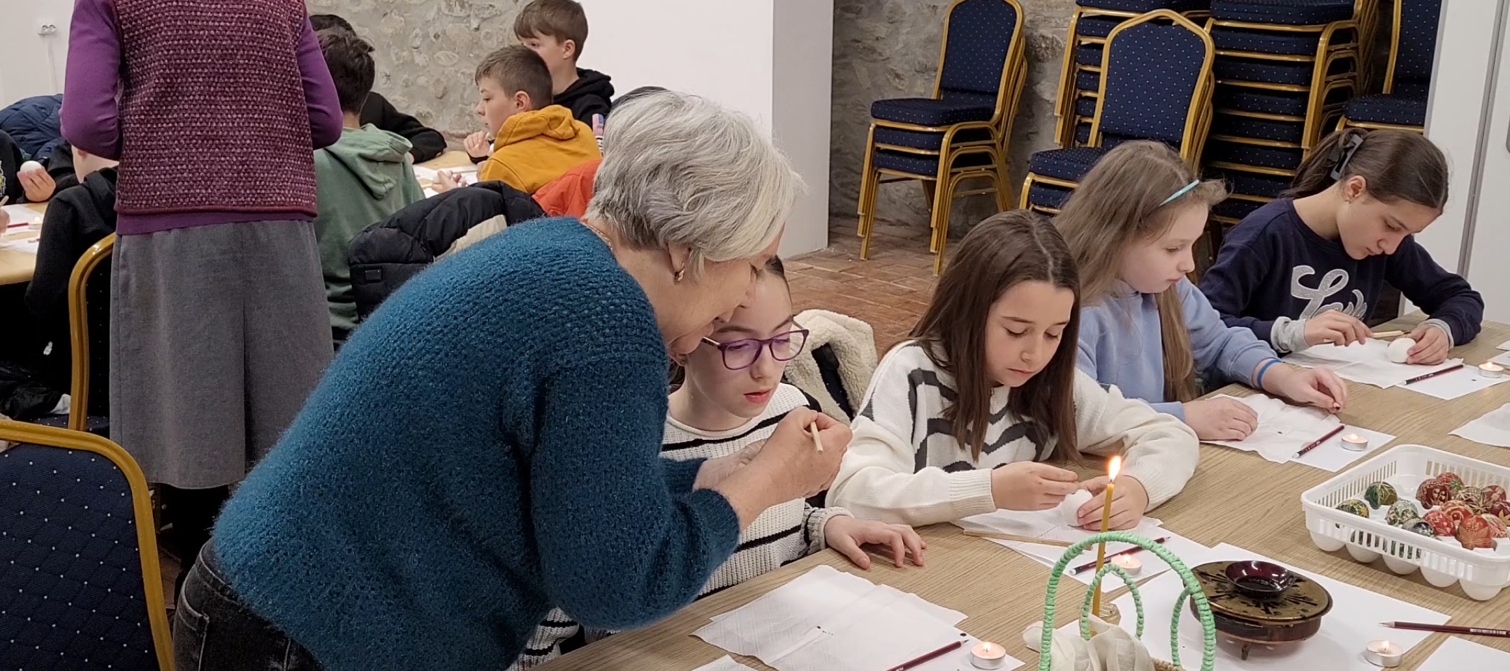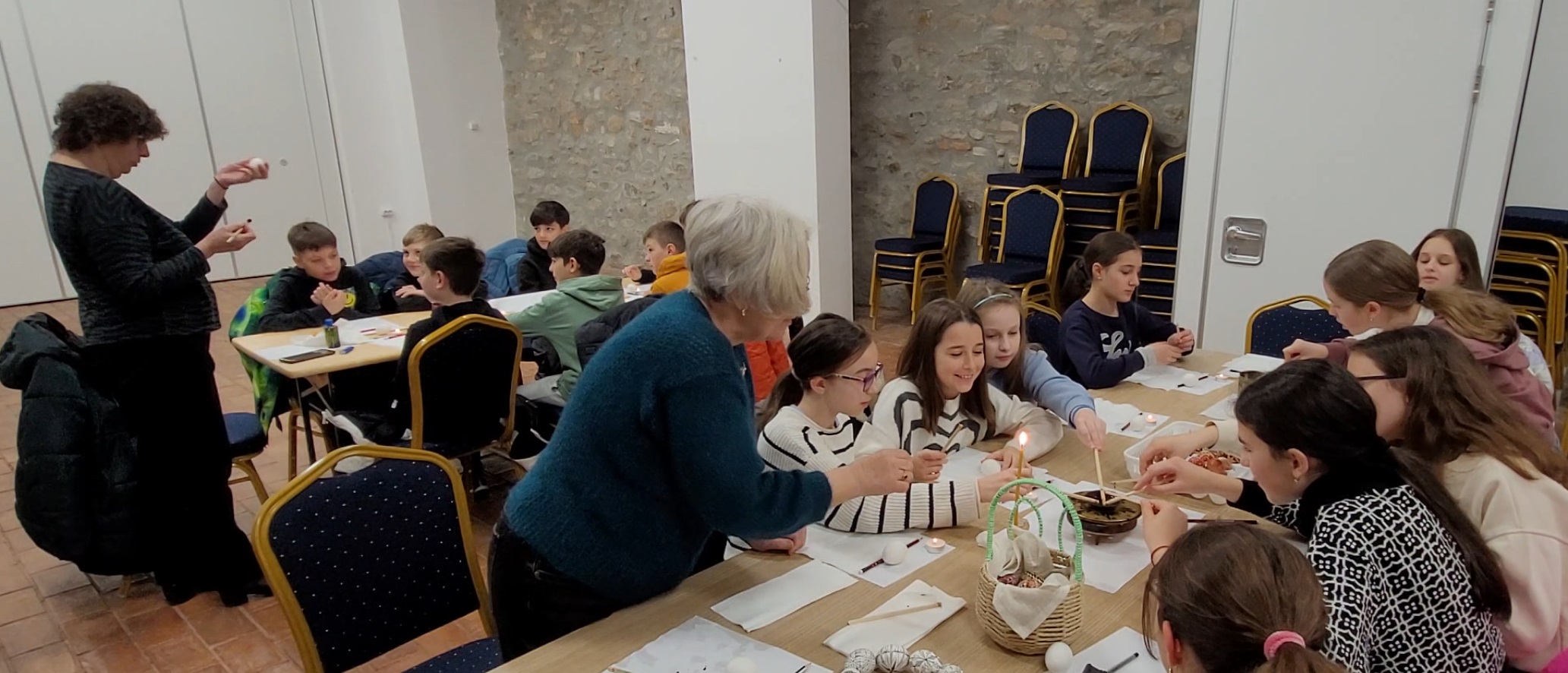 • Atelierele de încondeiat ouă au atras elevi din municipiu la Cetatea Făgărașului, unde tradițiile locale au prins din nou viață în fața copiilor.