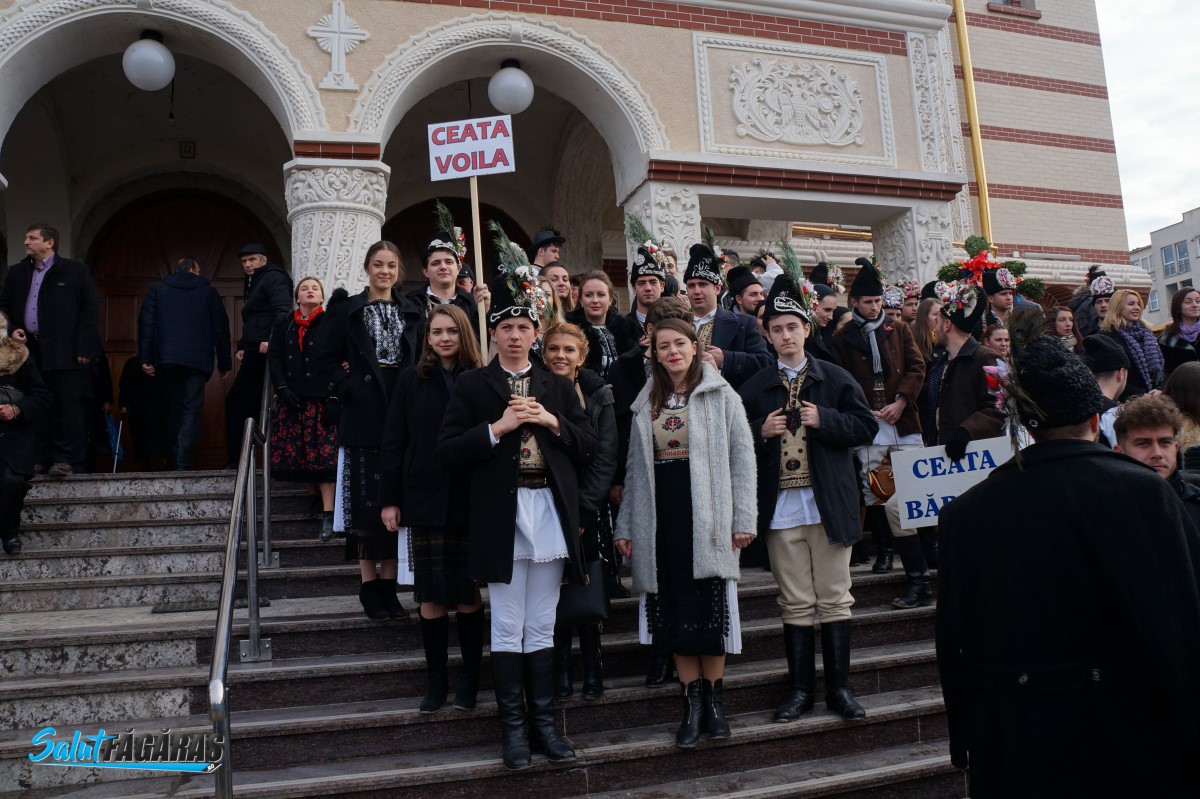 festivalul cetelor de feciori fagaras (7)Prima oprire a tinerilor a fost la Catedrala Ortodoxă, acolo unde au colindat. Catedrala din Făgăraş a devenit neîncăpătoare pentru sutele de oameni care au venit să îi asculte de cetaşi. Obieciul reînviat de tineri le-a trezit amintiri frumoase tuturor.