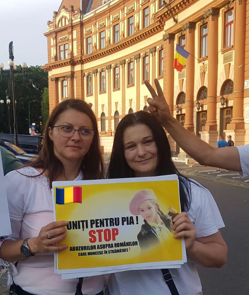 Pentru Pia am protestat pașnic în iulie 2021 în fața prefecturilor din toată țara și în fața ambasadei Germaniei la București. Am făcut-o pentru a trage atenția autorităților românești care nu au luat nicio atitudine.
