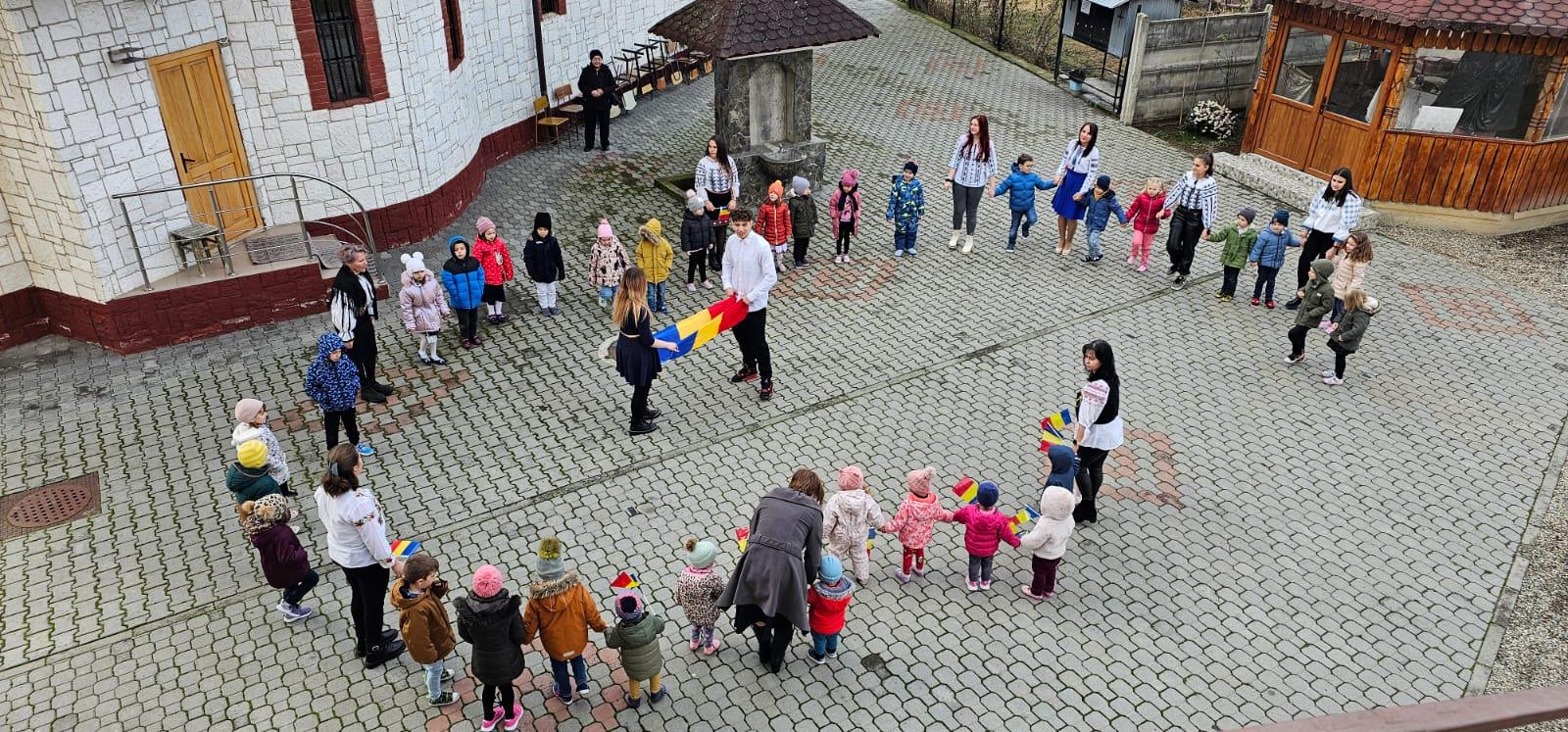 Și micuții preșcolari au pregătit mici momente artistice, prin care au marcat această zi. La Grădinița Mateiaș Brâncoveanu, micuții au cântat, au spus poezii, au aflat ce simbolizează drapelul, iar la final s-au prins cu toții într-o horă.