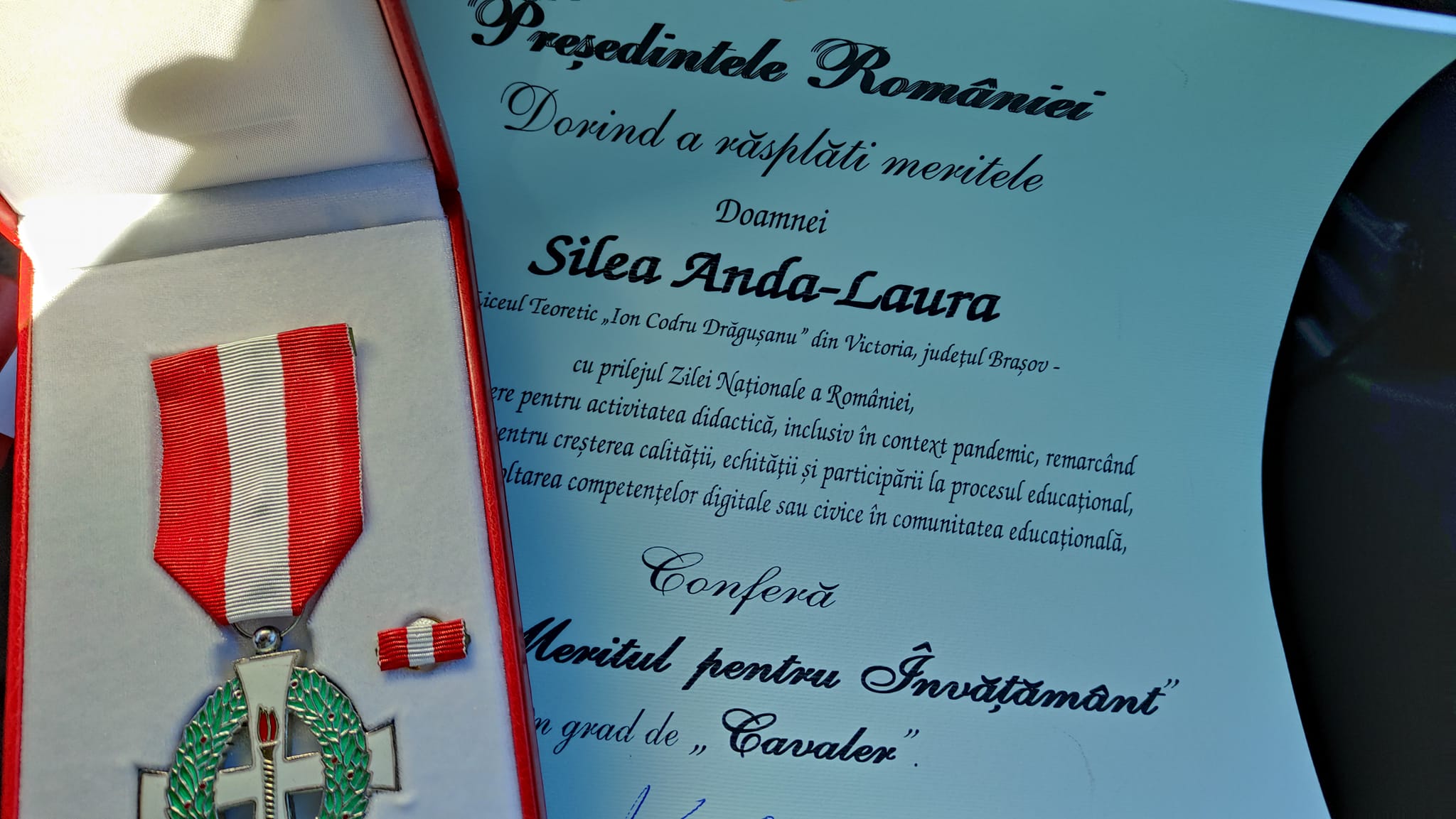 De Ziua Naţională, preşedintele Klaus Iohannis a decorat cadre medicale şi profesori, pentru rezultatele obţinute în domeniul în care activează şi pentru implicarea lor în proiecte destinate comunităţii. Printre profesorii decoraţi se numără şi o profesoară din oraşul Victoria. Din judeţul Braşov au fost 5 cadre didactice decorate.