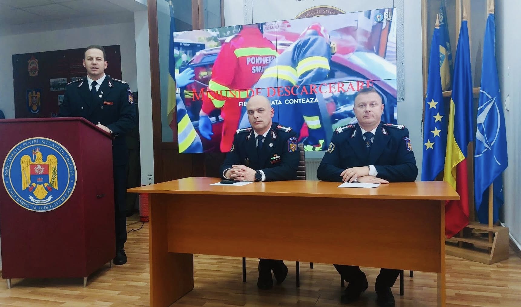 Detaliile privind acest proiect, dar și analiza activității operative a instituției, au fost prezentate astăzi, în cadrul unei conferințe de presă organizate la sediul ISU Brașov. La eveniment au participat locotenent-colonelul Adrian Terciu, adjunct al inspectorului-șef, colonelul George Anton, șeful Inspecției de Prevenire, și locotenent-colonelul Ciprian Sfreja, purtător de cuvânt al instituției.