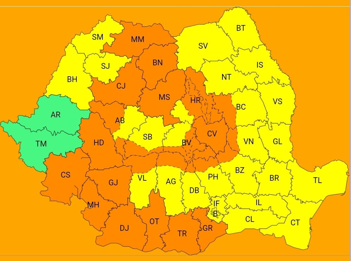 În intervalul ora 14.00 – 21.00, în județele Caraș-Severin, Hunedoara, Cluj, Mureș, Bistrița-Năsăud, Maramureș, Covasna, precum și în județul Brașov și zona de munte, sunt anunțate averse însemnate cantitativ, descărcări electrice, intensificări ale vântului cu rafale de 50–70 km/h și grindină de dimensiuni medii, de 3–4 centimetri. Cantitățile de apă pot ajunge la 40–50 l/mp, iar izolat pot depăși 60 l/mp.