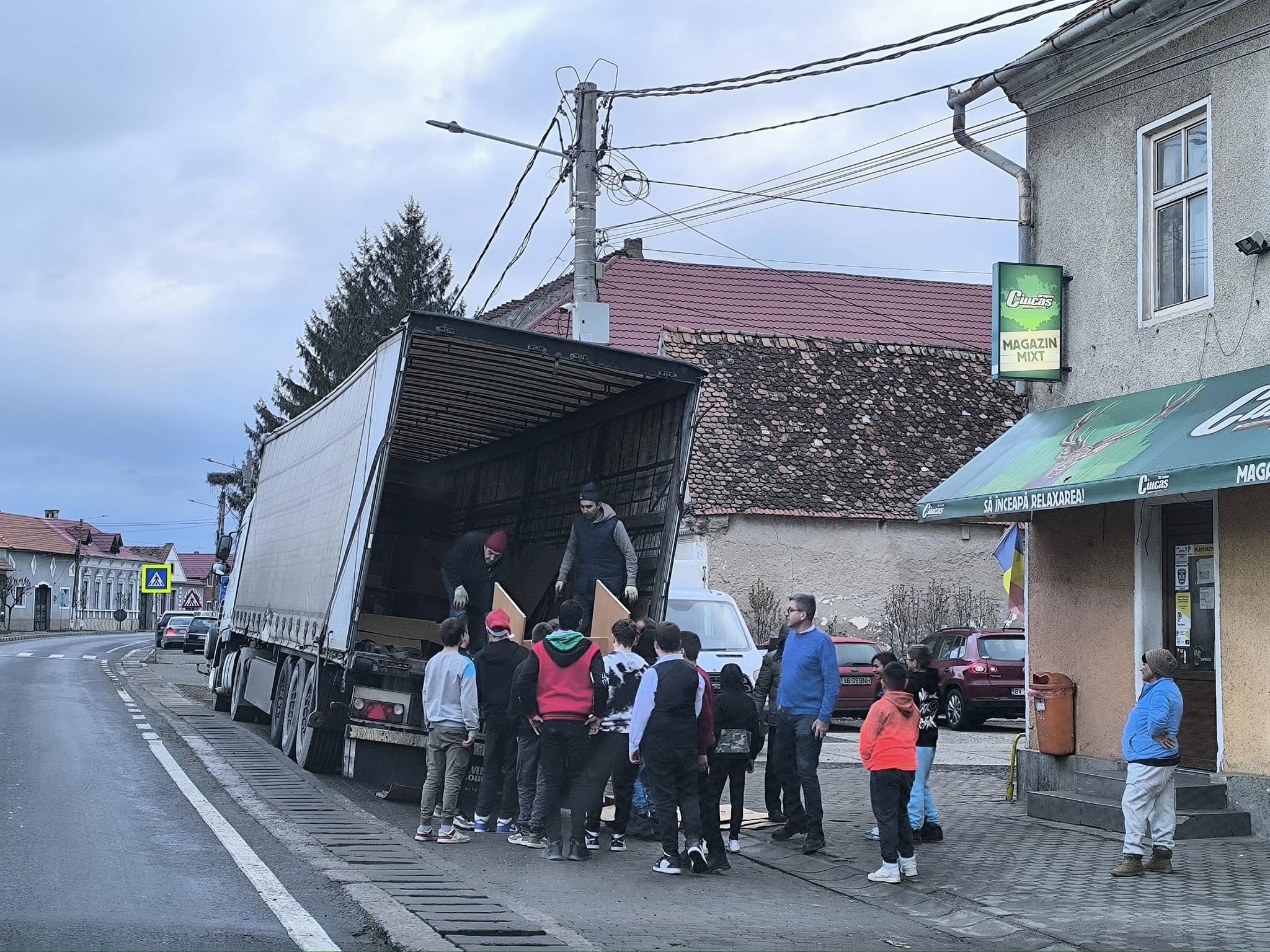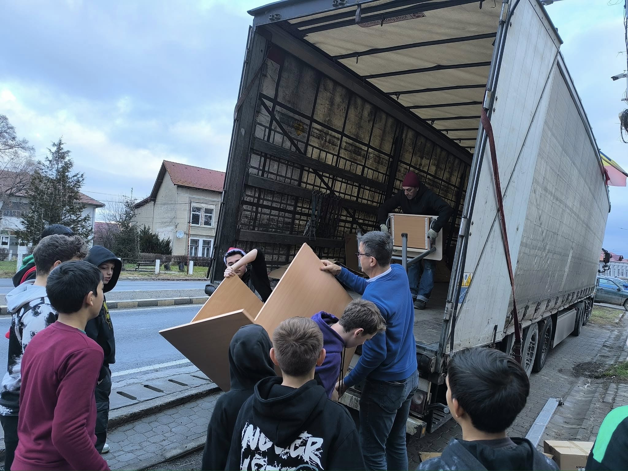 Astăzi, în prima parte a zilei, elevii, profesorii și angajații primăriei descărcau un lot compus din bănci și scaune.