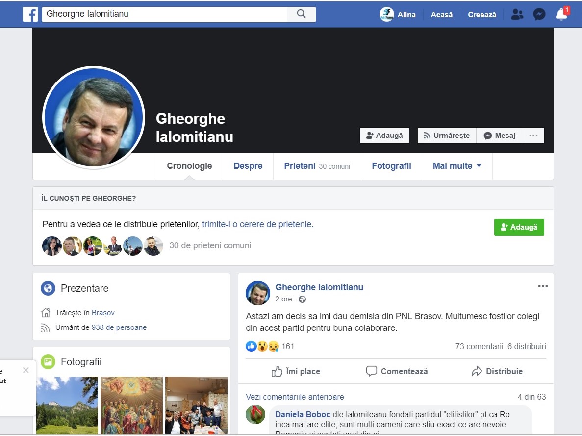 ,,Astazi am decis sa imi dau demisia din PNL Brasov. Multumesc fostilor colegi din acest partid pentru buna colaborare”, scrie Gheorghe Ialomițianu.