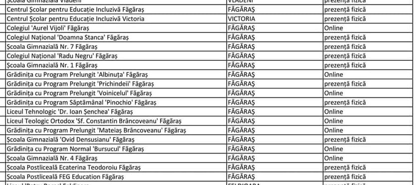 11 unităţi de învăţământ din Făgăraş vor avea de luni prezenţă fizică