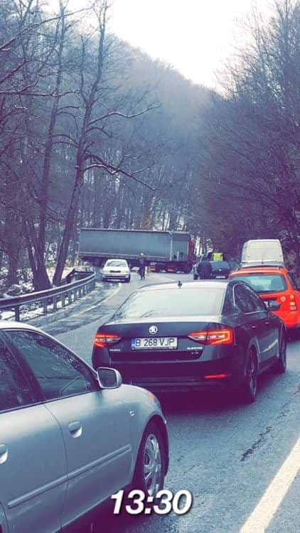 Circulație îngreunată pe DN 13, Valea Bogății din cauza unui TIR