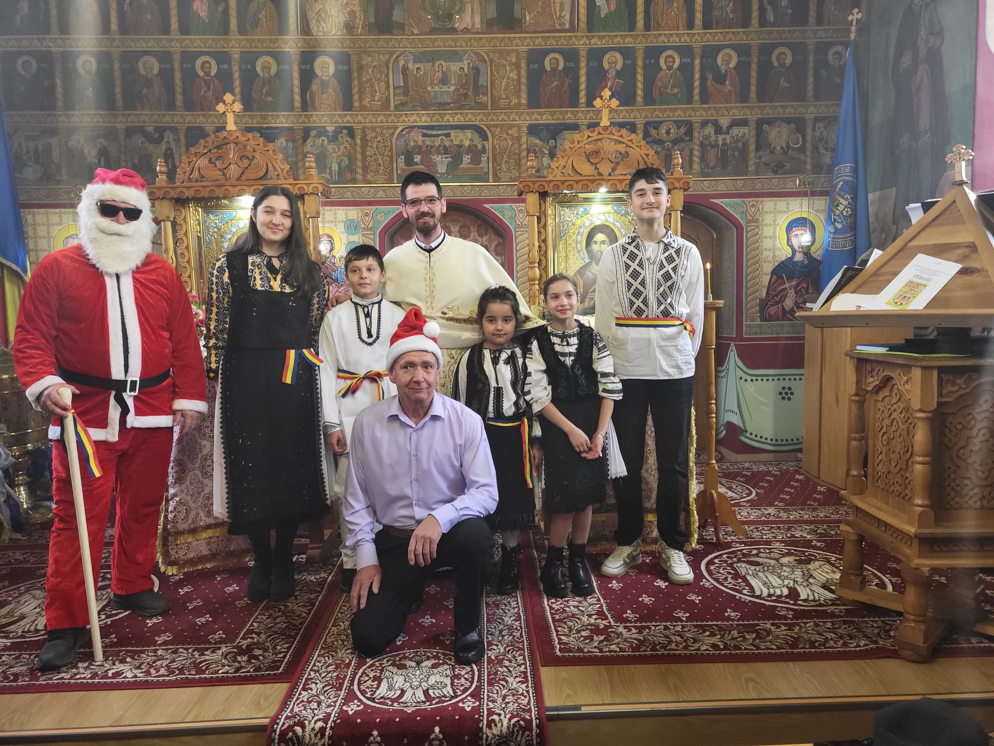 Biserica s-a umplut de glasuri vesele, iar atmosfera de sărbătoare a fost completată de prezența lui Moș Crăciun, care a venit cu daruri pentru copiii din parohie. Cadourile au ajuns nu doar la cei prezenți la Sfânta Biserică, ci și la credincioșii care, din cauza neputințelor, nu au reușit să participe la slujbă.
