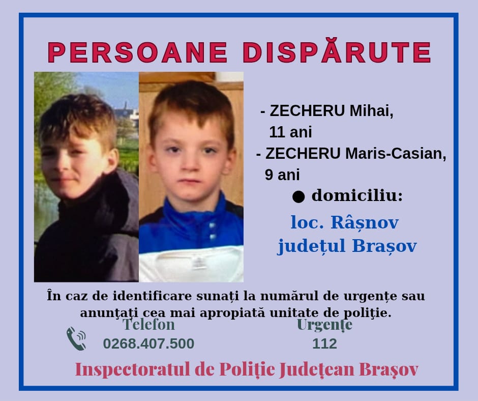 Doi frați minori din Râșnov, dispăruți de la domiciliu. Poliția cere ajutorul populației