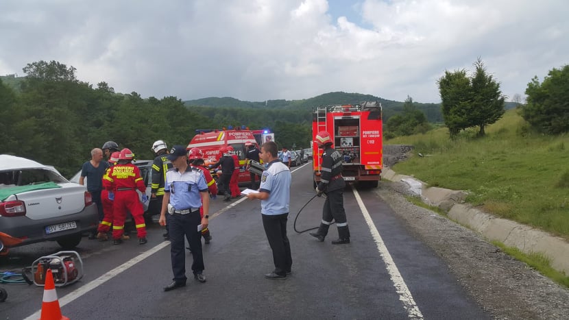 Din informațiile primite, șase victime au nevoie de îngrijiri medicale. La fața locului s-au deplasat 5 echipaje SMURD, 1 ambulanță, un echipaj cu apă și spumă. Toate persoanele sunt conștiente.