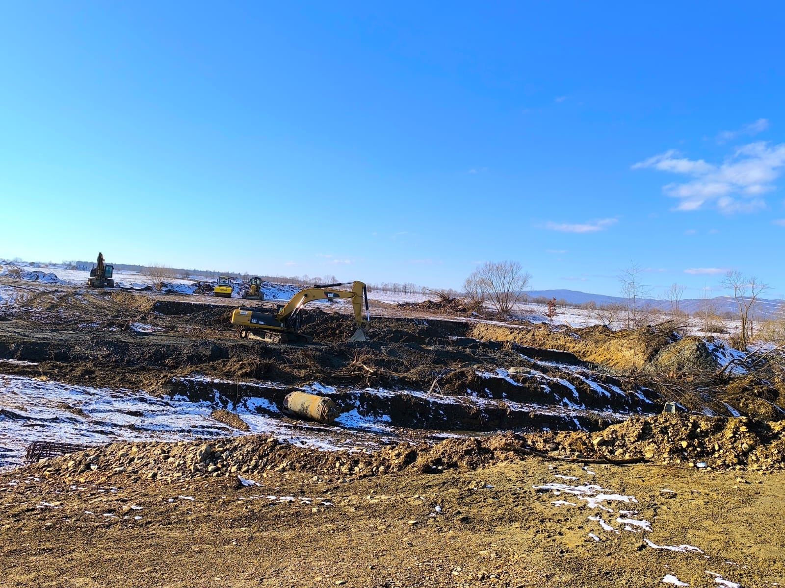 În paralel, se lucrează și la organizarea șantierului și la drumurile tehnologice, iar echipele de muncitori au trecut la decopertarea stratului de pământ vegetal de pe culoarul autostrăzii.