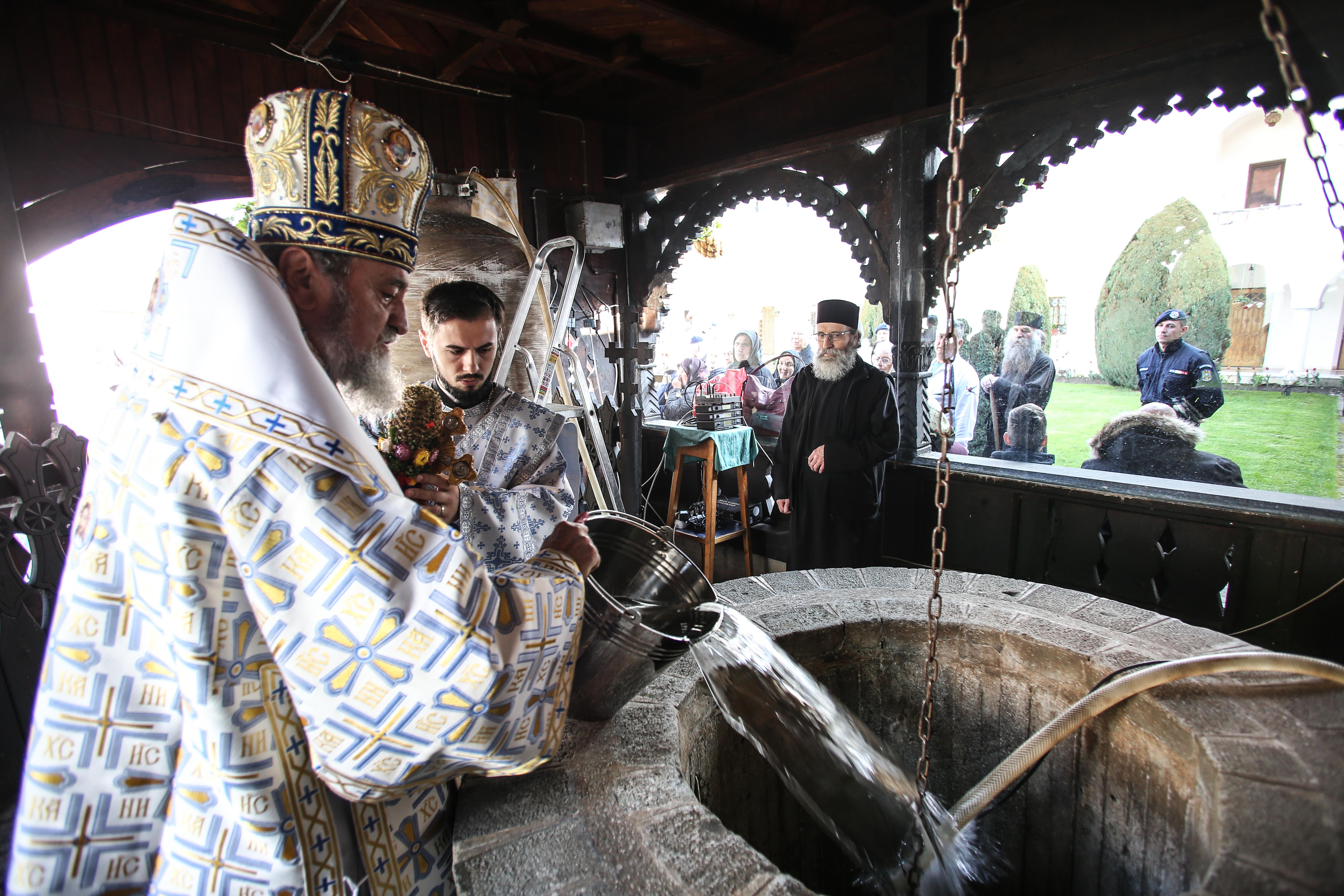 La vechea fântână a mănăstirii a fost oficiată slujba de sfințire a apei de un sobor de preoți și diaconi condus de Înaltpreasfințitul Laurențiu, Arhiepiscopul Sibiului și Mitropolitul Ardealului, alături de Preasfințitul Ilarion Făgărășanul, Episcopul-vicar al Arhiepiscopiei Sibiului. Credincioșii au luat apa sfințită pentru a gusta din ea și pentru a-și binecuvânta casele și gospodăriile.