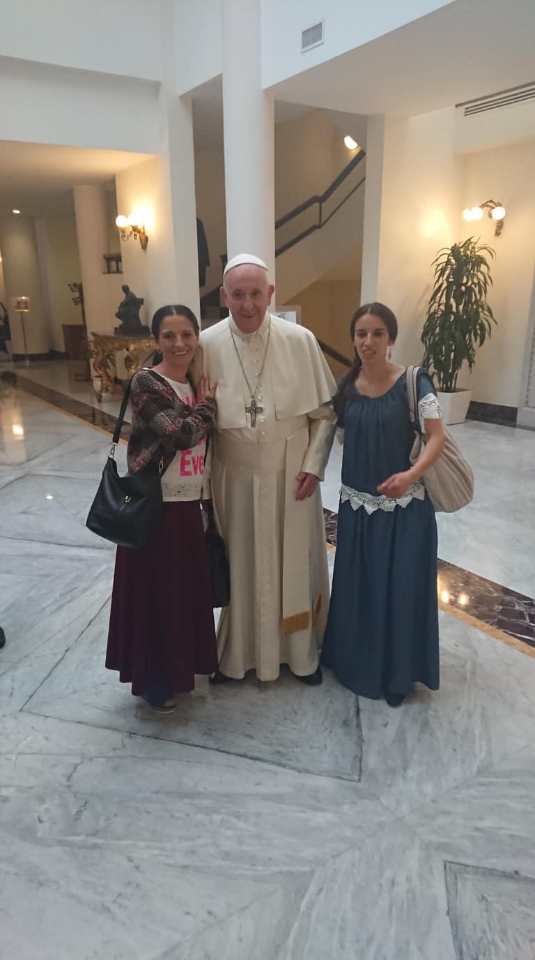 Vorbesc limba romă, limba română și limba italiană și din 2013 colaborez cu o asociație din Vatican. Astfel că am avut ocazia nu doar o dată, ci de trei ori, să mă întâlnesc cu Papa Francisc. Prima dată a fost în 2013, imediat după ce acesta a fost ales Papă. Apoi în 2014, atunci când Papa Francisc s-a întâlnit cu mai multe persoane de etnie romă. Iar a treia întâlnire a fost în această dimineață“, ne-a mărturisit tânăra.