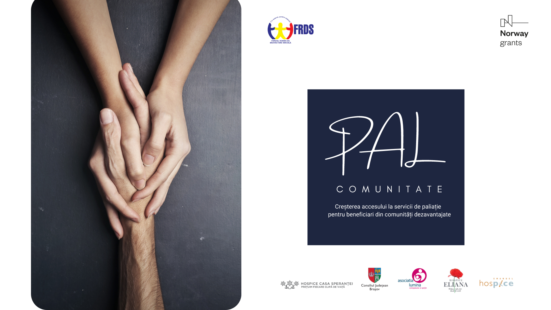 Proiectul PALcomunitate beneficiază de un grant în valoare de 2.091.652 euro oferit de Norvegia prin Granturile Norvegiene în cadrul Programului Dezvoltare locală. Obiectivul proiectului este de a crește accesul la servicii de paliație pentru beneficiari din comunități dezavatajate.