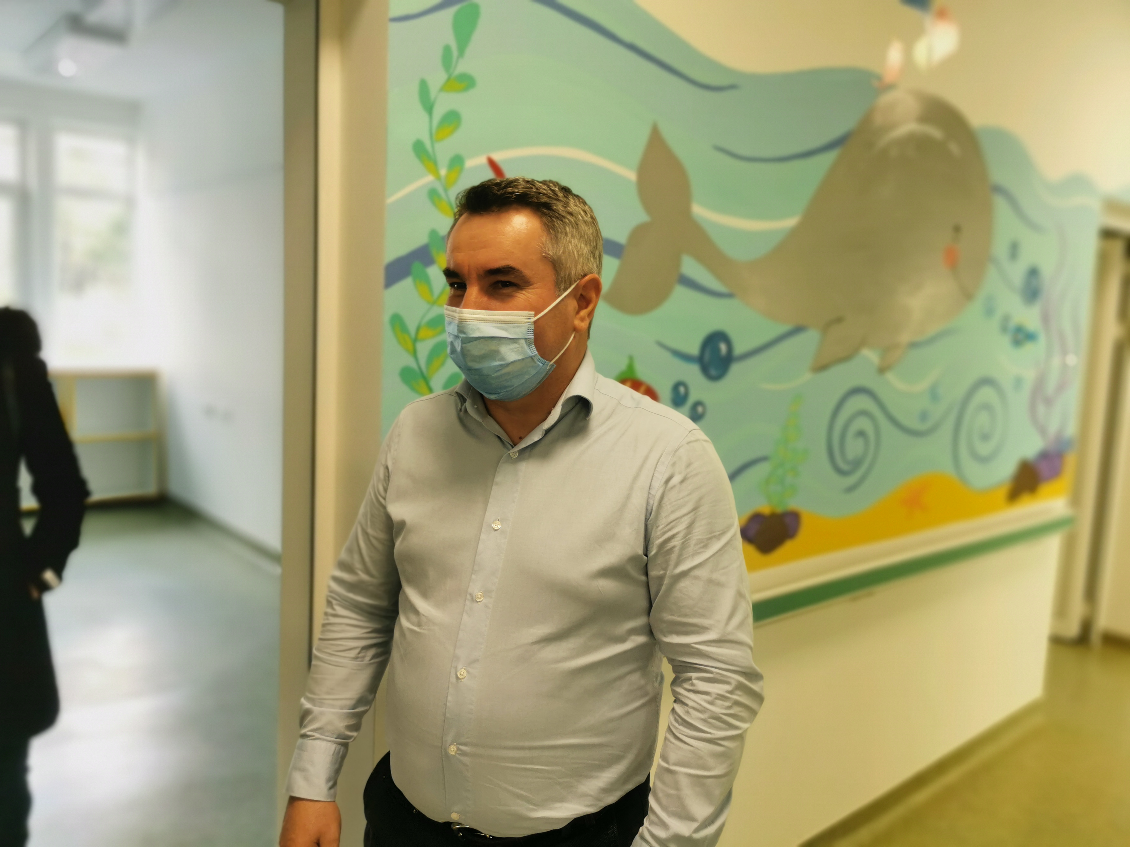 ,,Este foarte frumos, aerisit, plăcut în casă nouă. S-a încercat să se creeze un spaţiu cât mai familial copiilor. La Pediatrie lucrează deocamdată 4 medici pediatri: dr. Delia Godan, dr. Mărioara Bârsan, dr. Corina Şerban şi subsemnatul. Va mai veni un medic rezident care urmează să ajungă de la Braşov şi mai lucrează aici medicul neonatolog Voicu Alexandra”. De când a început pandemia, numărul copiilor internaţi a scăzut puţin, am avut cam 40-50 de copii internaţi lunar”, a declarat dr. Constantin Grigoriţă, şef Secţie Pediatrie.