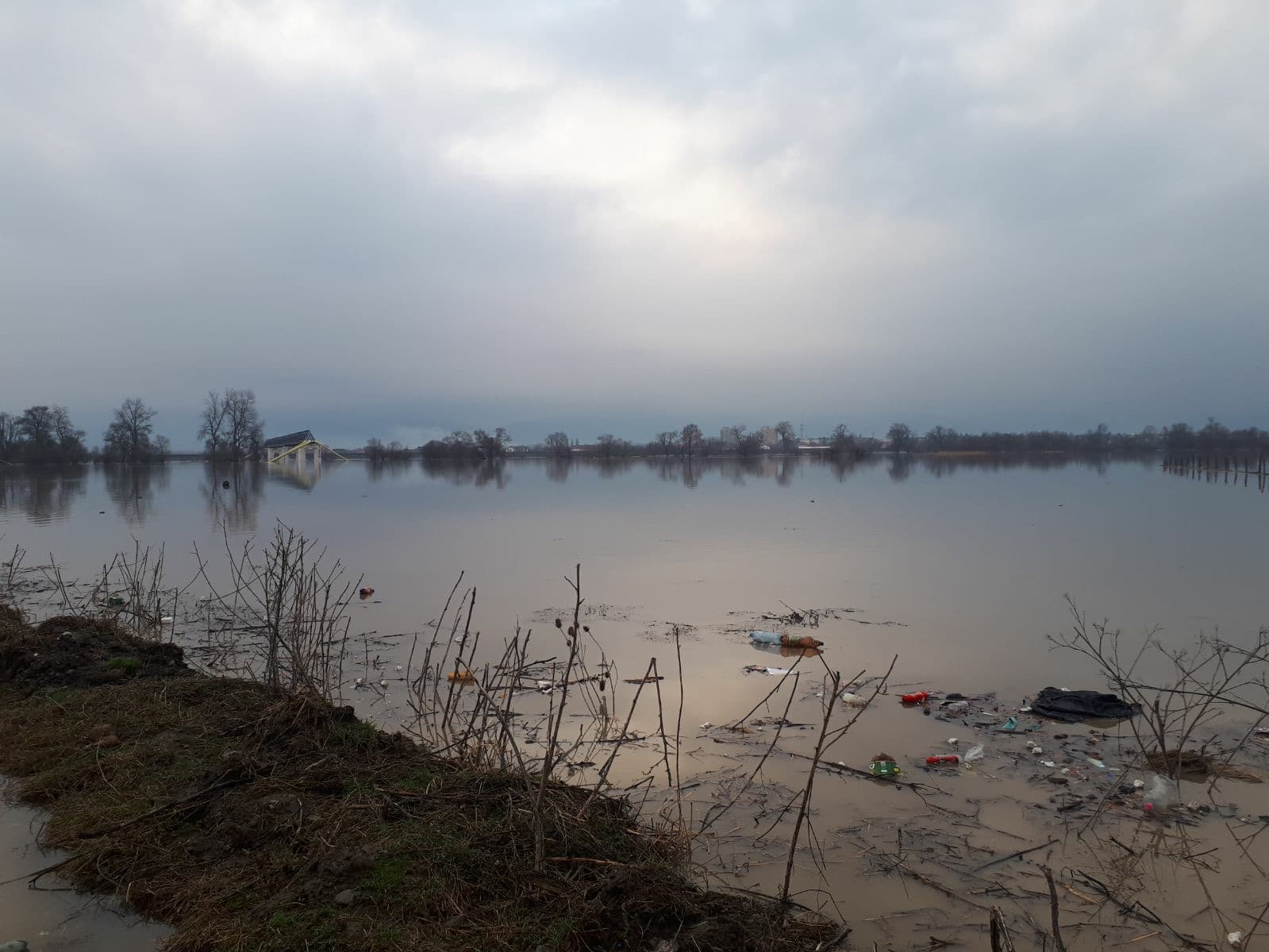 Imaginea lăsată de apele care s-au revărsat din matcă este dezolantă. În această dimineaţă, locuitorii de la periferia cartierului Galaţi (ieşirea spre satul Şona) s-au trezit cu apele până în case.