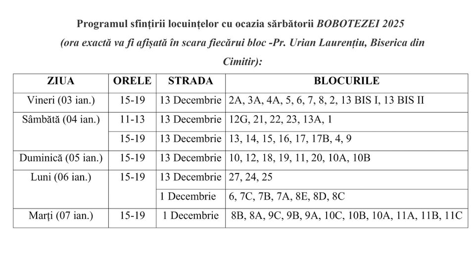 Preoţii şi-au împărţit pe zile străzile din cartierele în care slujesc. În funcţie de mărimea parohiei, mersul cu botezul se întinde de la 2 la 5 zile.