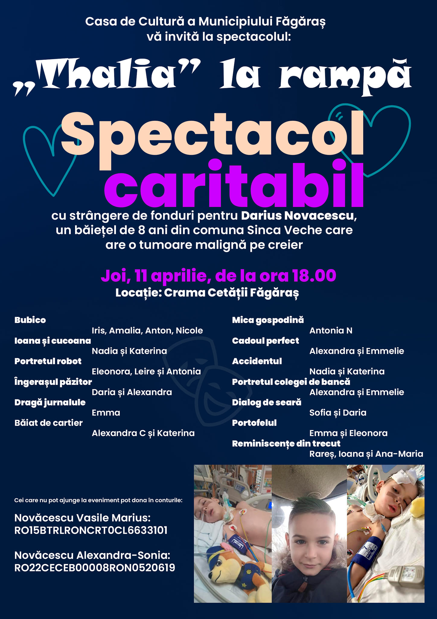 Spectacol caritabil pentru Darius, copilul din Șinca Veche care are nevoie de ajutorul nostru. Trupa Thalia vă invită la teatru