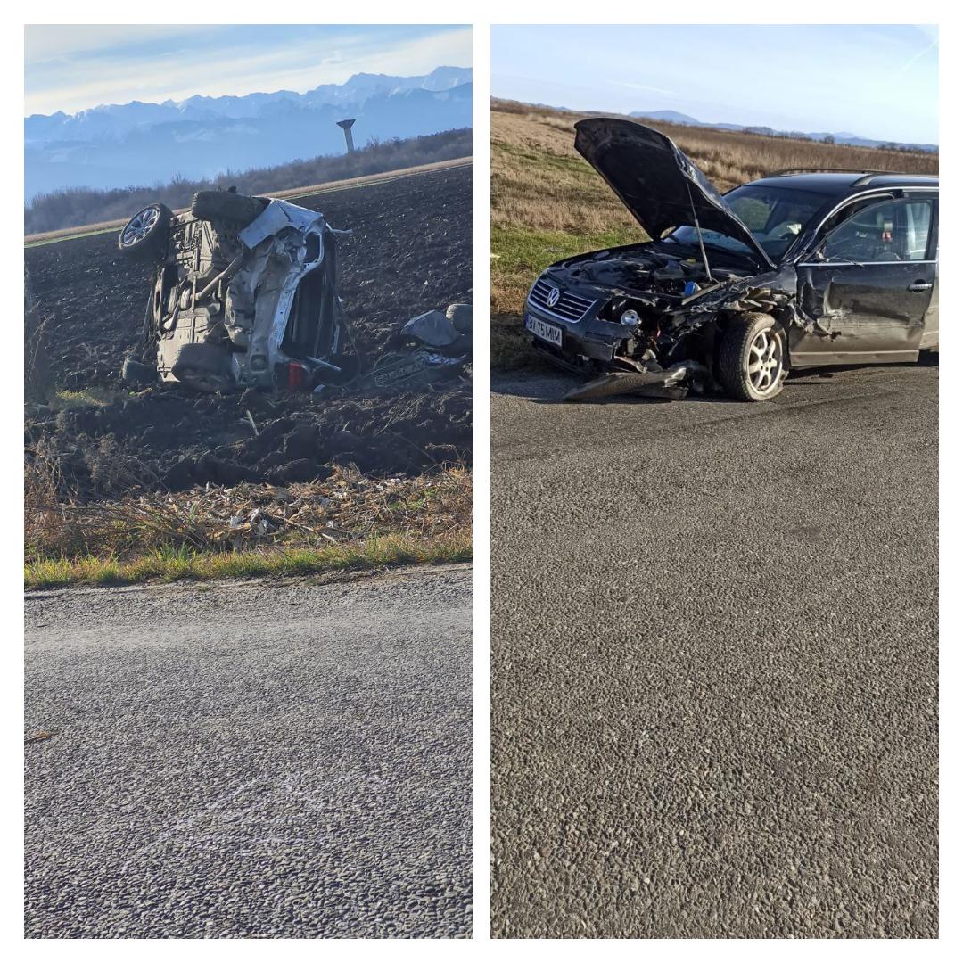 Urmărire cu focuri de armă lângă Făgăraș! Un şofer băut şi fără permis a lovit autospeciala de poliţie şi o altă maşină, apoi s-a răsturnat